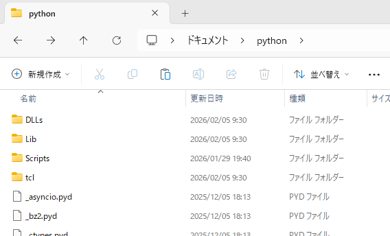 Embedded Pythonと同じバージョンのインストーラー版を、いったん適当なフォルダにインストール。