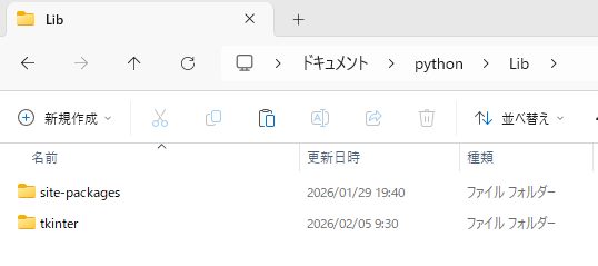 「tkinter」フォルダ → Lib\site-packagesフォルダ内にコピー。