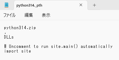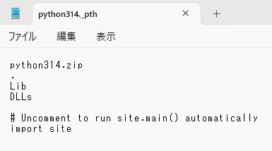 職場のPCなので、Pythonインストール版を利用できずzip解凍版(Embedded Python)にて環境構築しました。