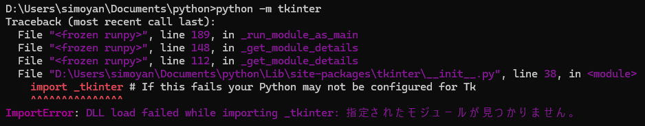 ImportError: DLL load failed while importing _tkinter: 指定されたモジュールが見つかりません。