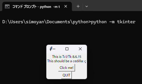 「python -m tkinter」を実行したところ、見事に失敗です(笑)