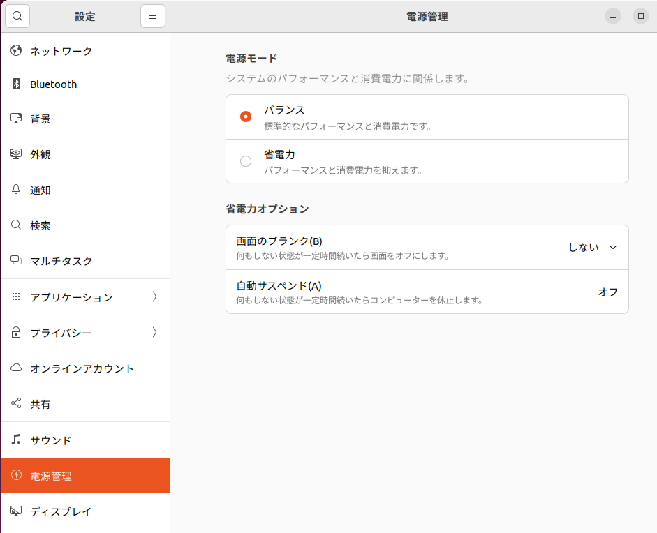 念のため、WindowsとUbuntuのスリープ設定を無しに。